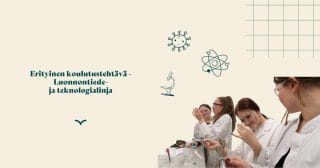 Erityinen koulutustehtävä – Luonnontiede- ja teknologialinjaLinjalla voit opiskella enemmän ja syvemmin matematiikkaa, kemiaa, fysiikkaa, biologiaa ja maantiedettä sekä tieto – ja viestintätekniikkaa.