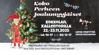 Koko Perheen Joulumyyjäiset 22.11.2025 klo 10-17 ja 23.11.2025 klo 12-17 Kallentorilla