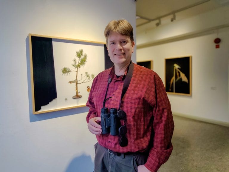 8/5 €Under den guidade rundturen granskar utställningsamanuens Elina Suutari och fågelskådaren Terho Taarna Sanna Kannistos fotografier ur konstens och naturveenskapens synvinklar.
