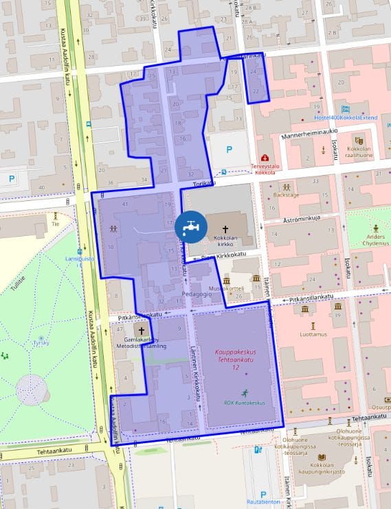 Område: Området mellan Borgmästaregatan, Östra Kyrkogatan, Fabriksgatan och Gustaf Adolfs gata.