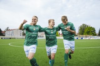 Suuri joukko juoksijoita juoksee puiden katveessa kameraa kohti. Juoksijoilla on numerolaput paidoissaan. Juoksijoiden joukossa on miehiä, naisia ja lapsia. Kuvan vasemmassa laidassa on aita, jonka takana on ihmisiä juoksua katsomassa.